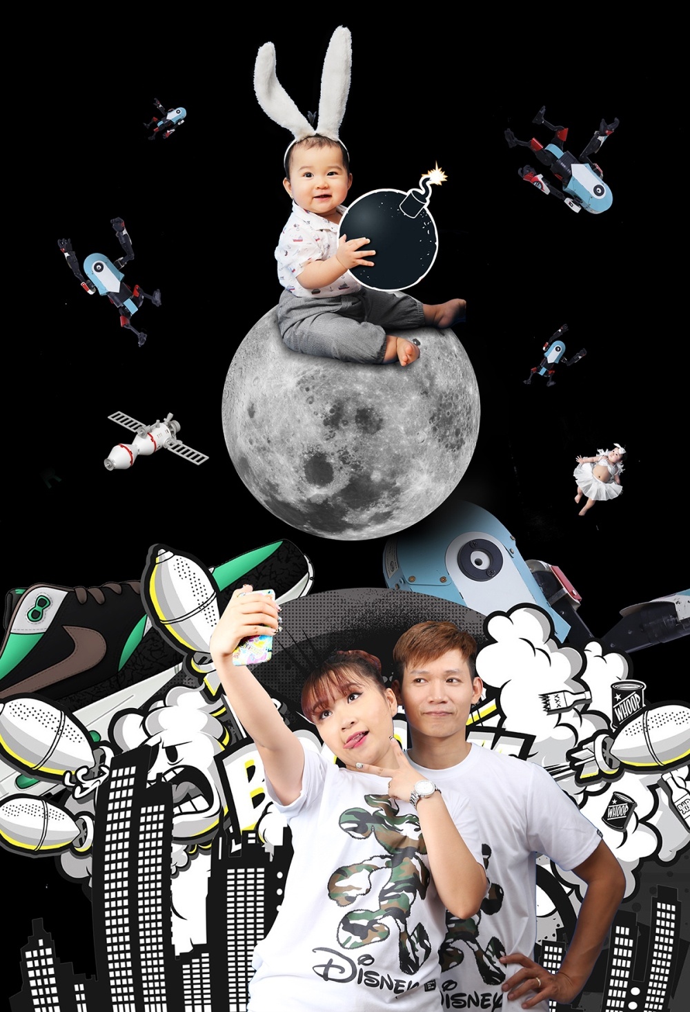 Cặp vũ công Viết Thành - Quỳnh Trang đã có những phút giây vui vẻ bên con gái đầu lòng trong bộ ảnh theo phong cách hoạt hình.