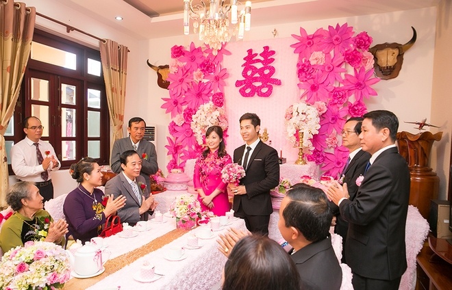 | Lễ đính hôn của cặp đôi với những nghi thức truyền thống. Ảnh: NVCC. |