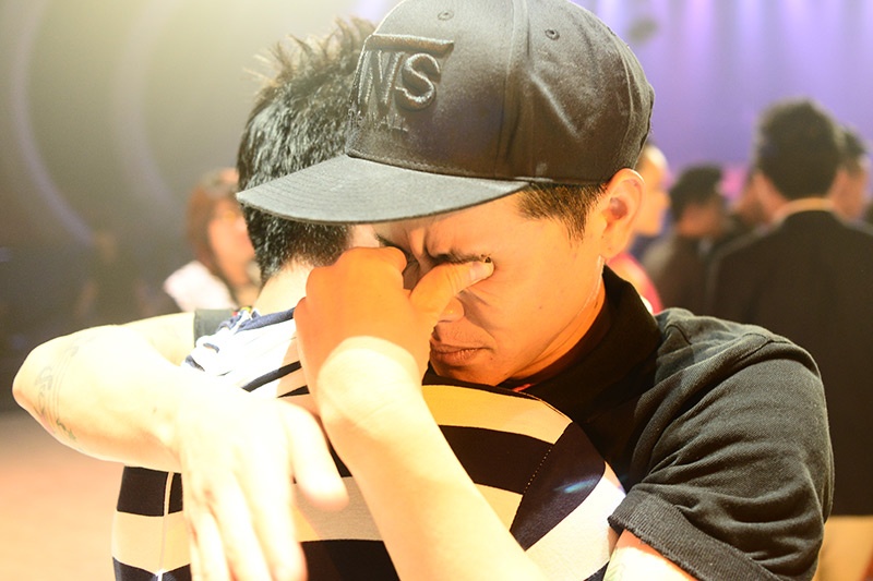 Đến cuối cùng Hoàng Minh vẫn giữ sự cứng cỏi nhưng nước mắt bật ra không kìm nén được. |