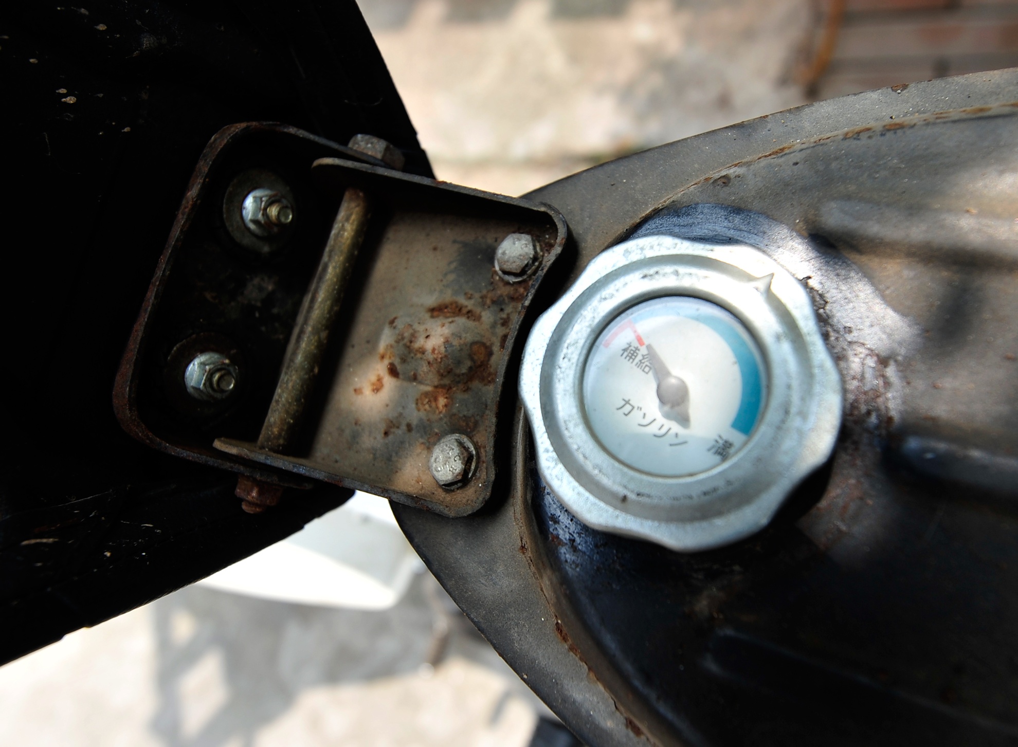 | Nắp bình xăng kèm đồng hồ báo xăng trên những chiếc xe Chaly nguyên bản nhập nội địa Nhật về. |
