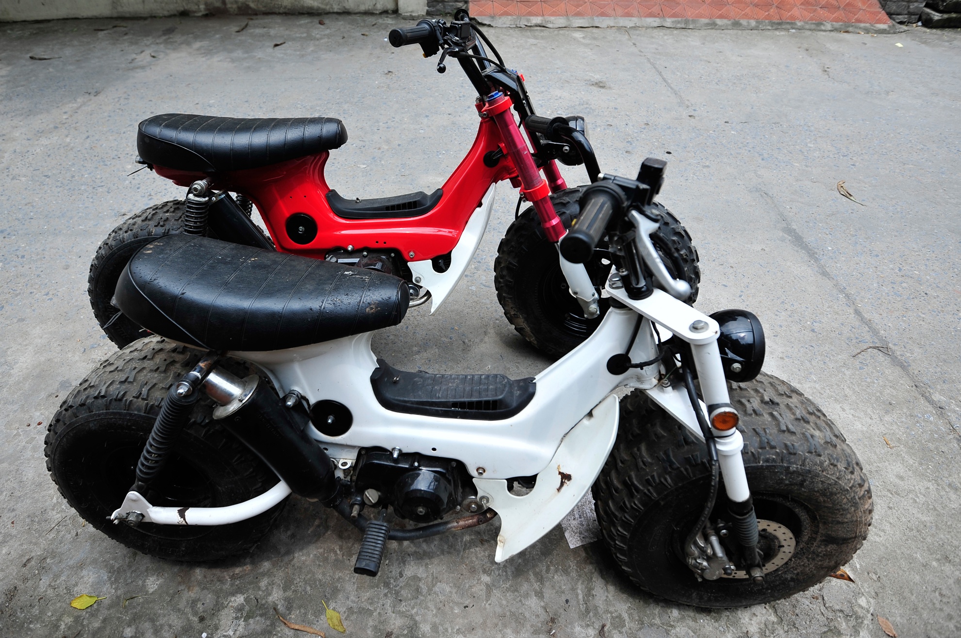 | Sự khác biệt giữa chiếc Chaly màu đỏ và màu trắng nằm ở một vài chi tiết. Ngoài cỡ lốp nhỏ hơn xe trắng 3 inch thì chiếc xe màu đỏ được trang bị hệ thống giảm xóc ngược (up-side-down). |