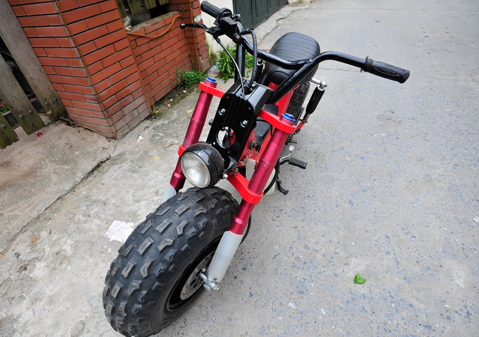 | Để vận hành chiếc xe với cặp lốp cồng kềnh này, anh Quốc Anh - người trực tiếp độ xe đã phải thay động cơ nguyên bản sang động cơ của xe Wave 110. |