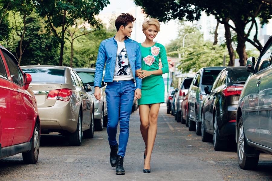 | Trang phục bắt mắt giúp cả hai tự tin trên phố... |