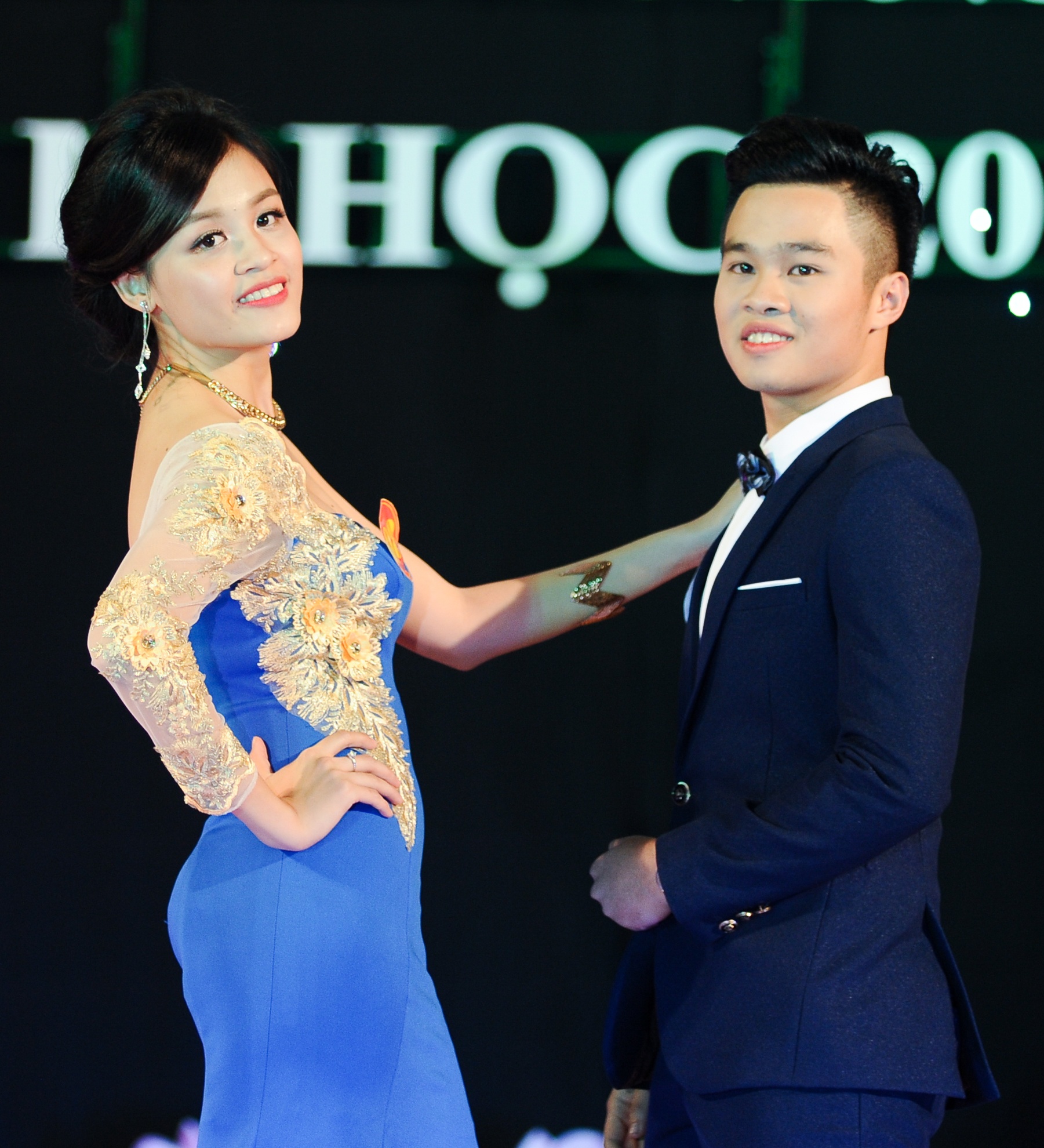 | Chiều cao nổi bật của Nguyễn Linh Trang khiến cô không lép vế khi đứng cạnh bạn đồng hành Thành Tuân. |