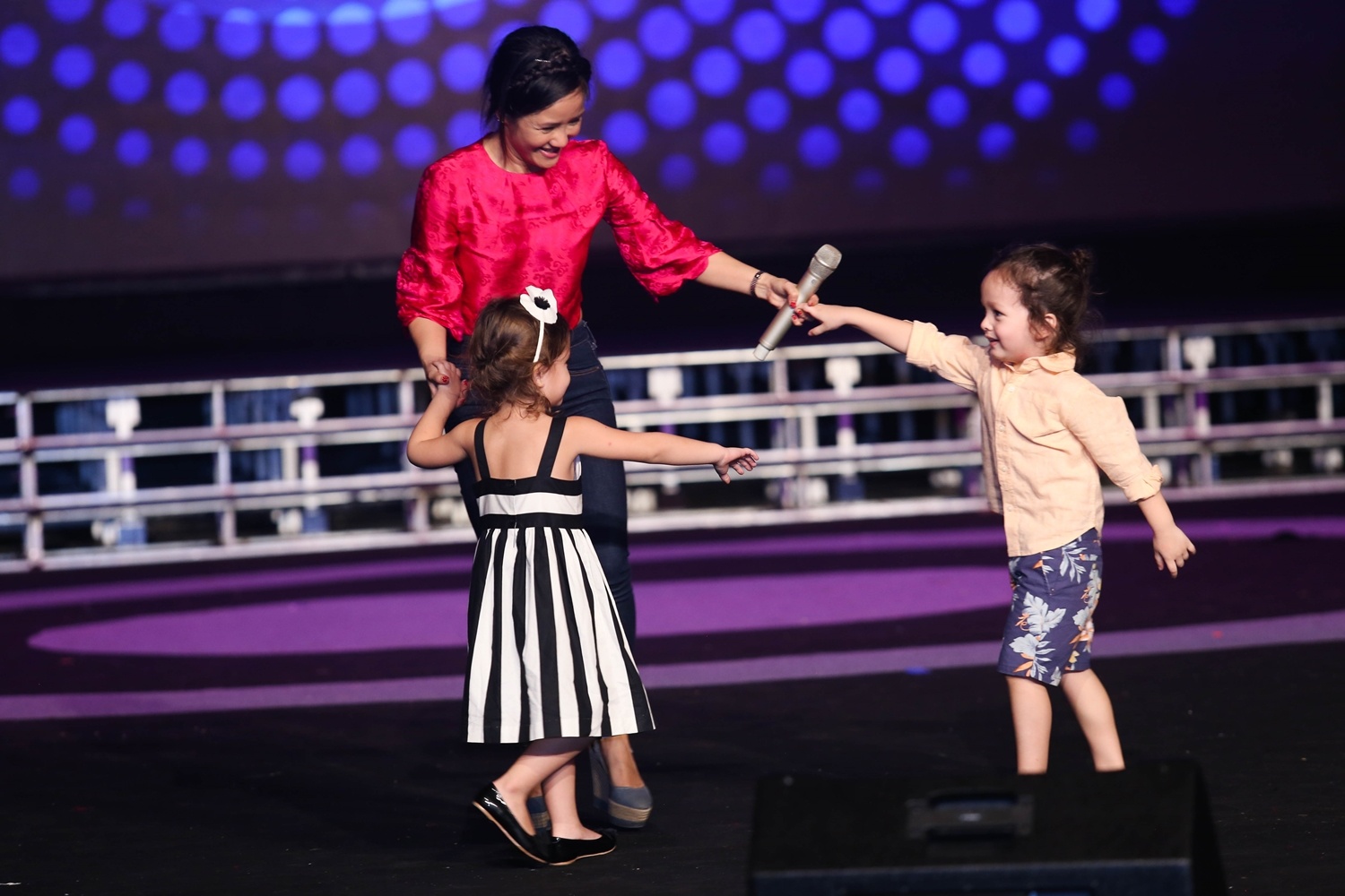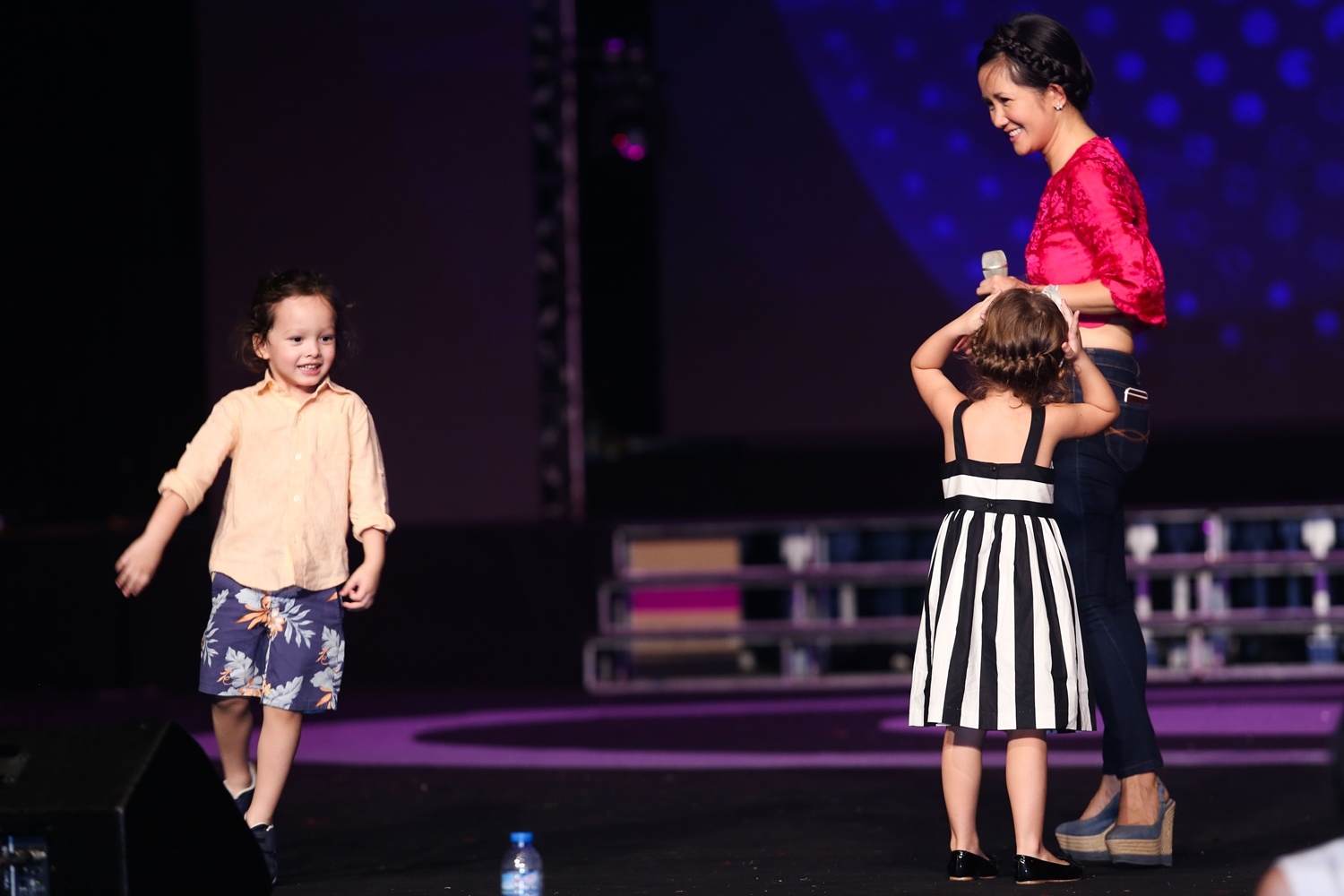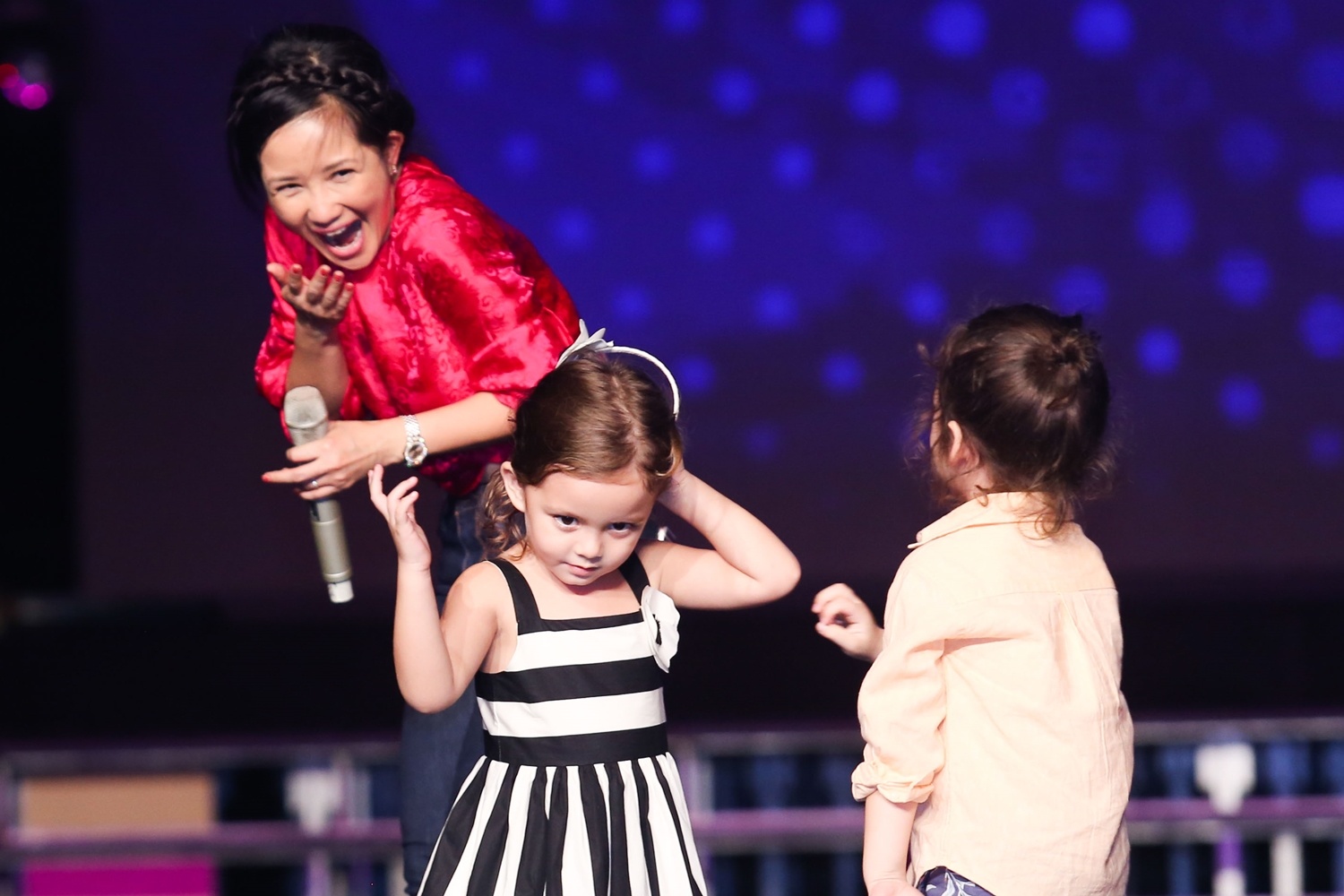 Cặp song sinh lai Tây của Hồng Nhung quậy trên sân khấu