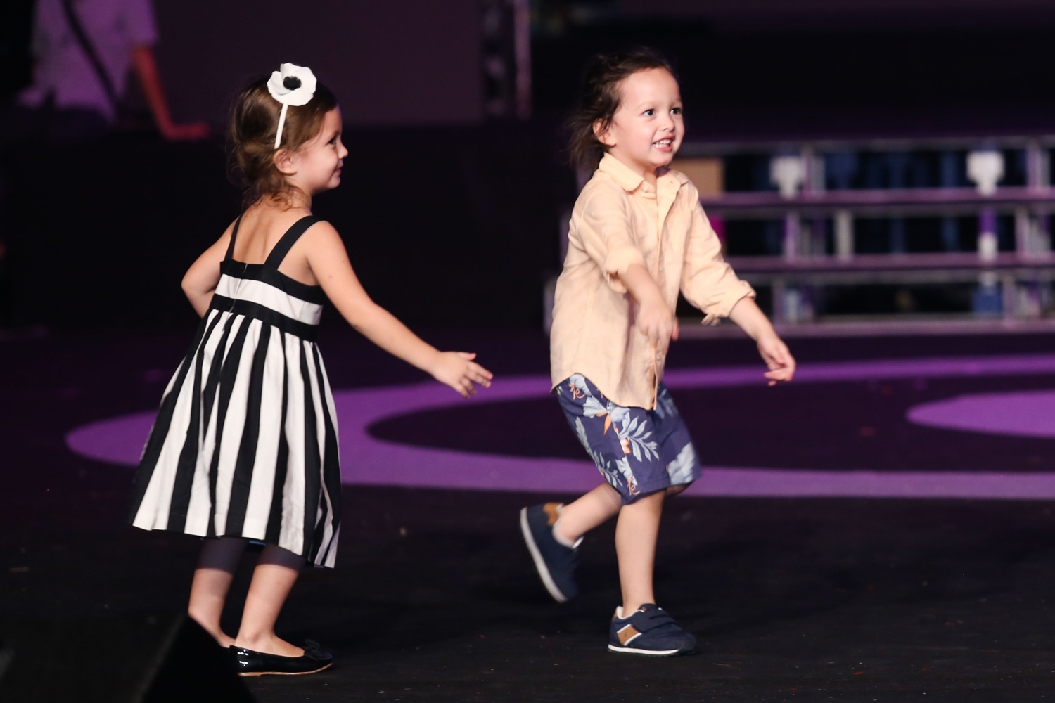 | Đến phần ráp nhạc của mẹ, cũng là lúc cặp song sinh 3 tuổi rưỡi leo hẳn lên sân khấu để nhảy múa, chơi đùa cùng nhau. |