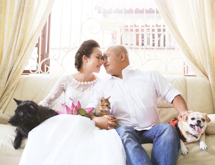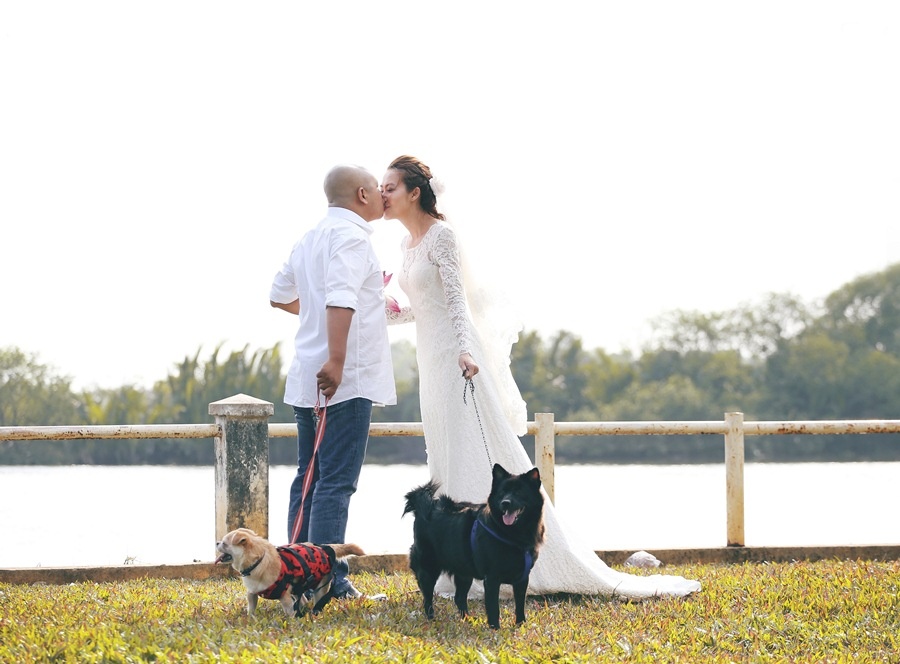 Cặp vợ chồng chụp ảnh cưới cùng chó mèo bị bỏ rơi