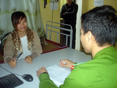 | Hỏi cung Nguyễn Thị Ánh tại cơ quan điều tra Công an huyện Gia Lộc (Hải Dương). |
