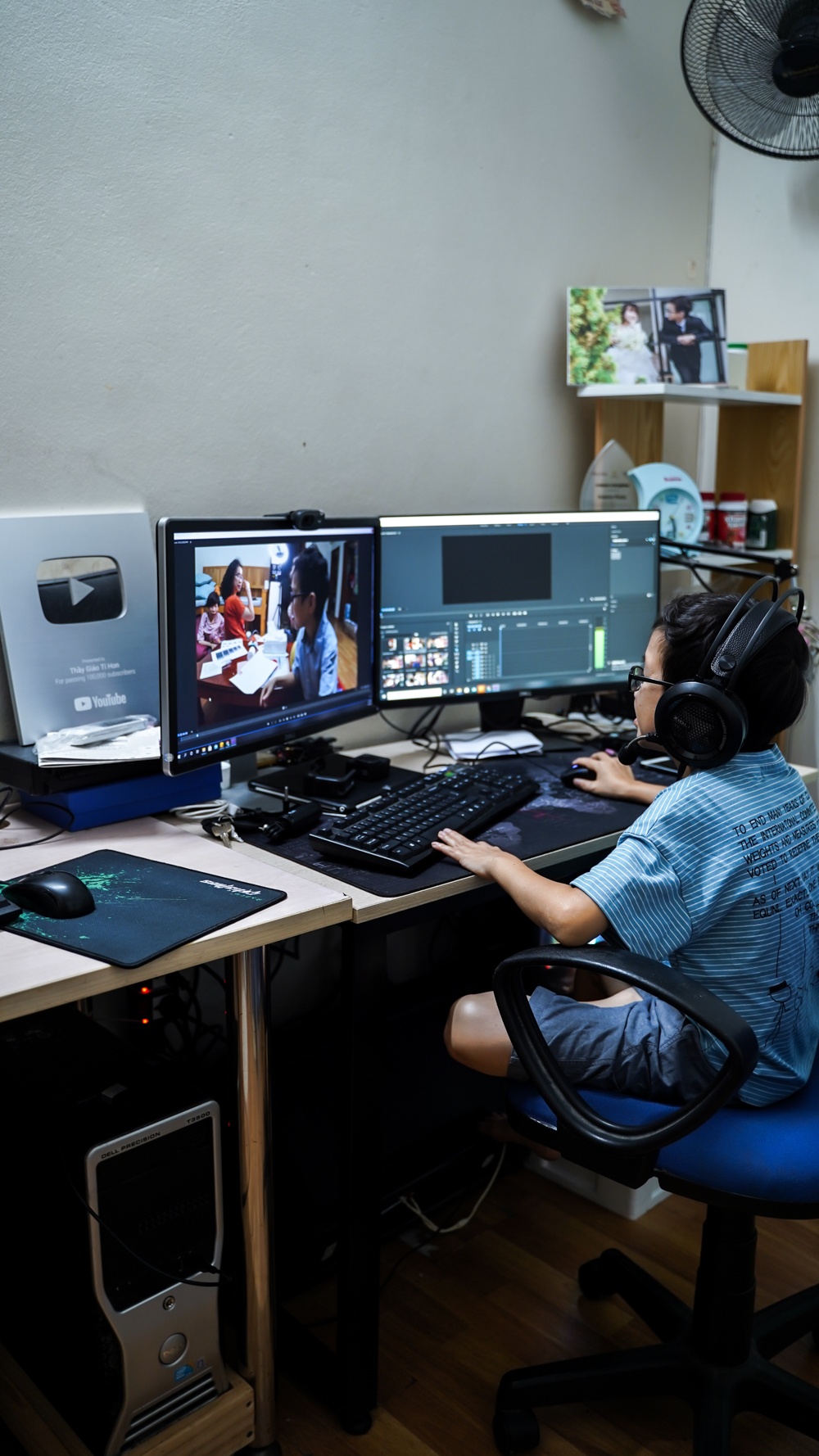 | Ngoài công việc dạy học ở trung tâm, tôi còn làm video để đăng lên mạng. Nội dung chủ yếu xoay quanh cuộc sống thường ngày của hai vợ chồng. Buổi chiều trước giờ cơm tối thường là lúc tôi tranh thủ chỉnh sửa video. Đối với tôi, đây cũng là một niềm vui trong cuộc sống. |