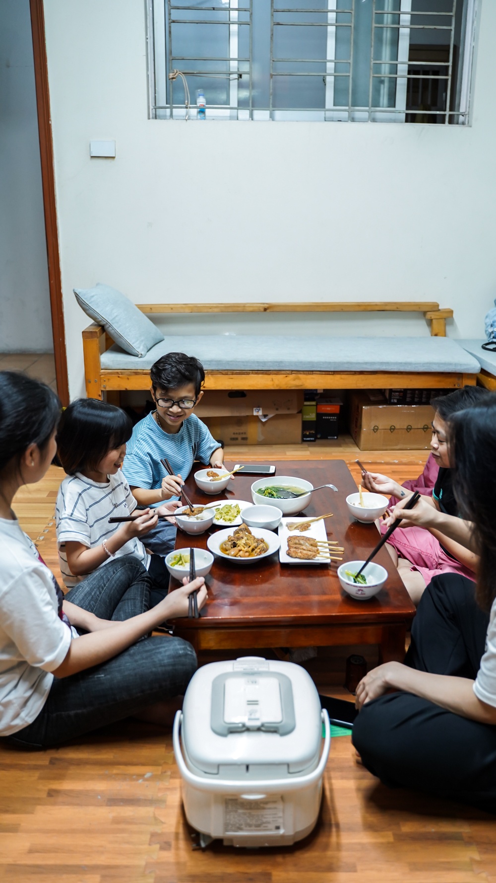 | Gần 19h, khi 3 người bạn cùng nhà đi làm về, chúng tôi ngồi ăn cơm với nhau. Mọi người vui vẻ kể về những điều xảy ra trong một ngày. Từ khi có vợ, tôi tự dặn mình phải cười nhiều hơn, giữ sức khỏe hơn, cố gắng để sống vui vẻ hơn nữa. |