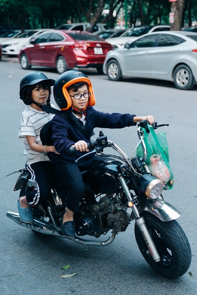 | Trên đường, tôi phải quan sát kỹ xung quanh, tránh chạy gần xe to vì khuất tầm nhìn, dễ gây tai nạn. Người đi đường thường nhìn tôi với ánh mắt tò mò. Thỉnh thoảng, tôi còn bị hỏi: “Đủ tuổi chưa mà lái xe máy?”. |