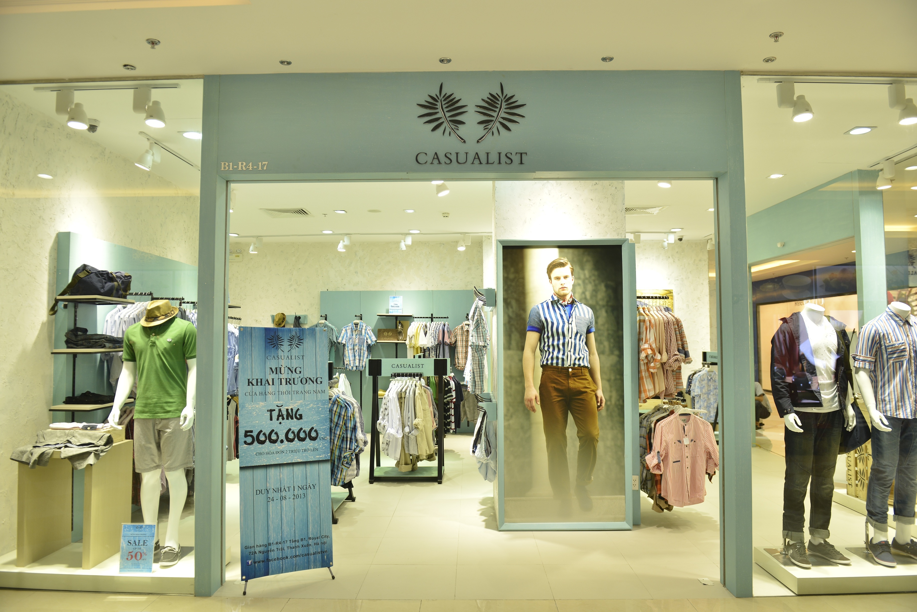 Mừng khai trương ở Royal City, Casualist giảm 500.000 cho mỗi hóa đơn mua hàng 2 triệu; bên cạnh đó là giảm 10% nhiều sản phẩm tại cửa hàng; chỉ áp dụng tại cửa hàng Royal City ngày khai trương 24/8. Ngoài ra vẫn có những khuyến mãi hấp dẫn trong tháng chào mừng khai trương.