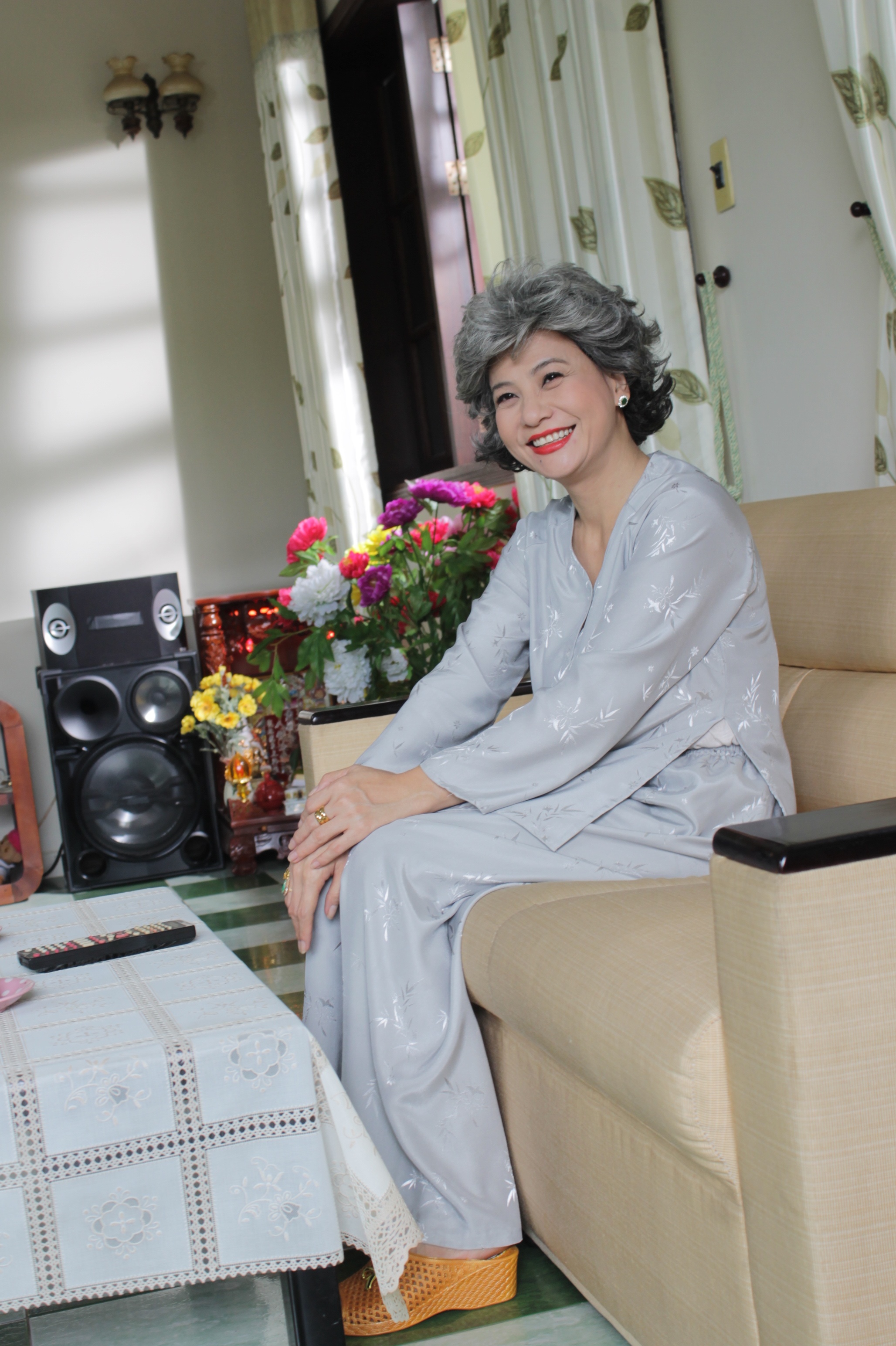 Với mái tóc bạc trắng được cắt tém cá tính, diễn viên Cát Phượng lạ lẫm trong vai bà giáo Thuận ở series mới của phim hài sitcom Cười để ngẫm. Được biết, chị đã có ý tưởng tạo hình độc đáo cho nhân vật của mình ngay sau khi nhận được kịch bản.