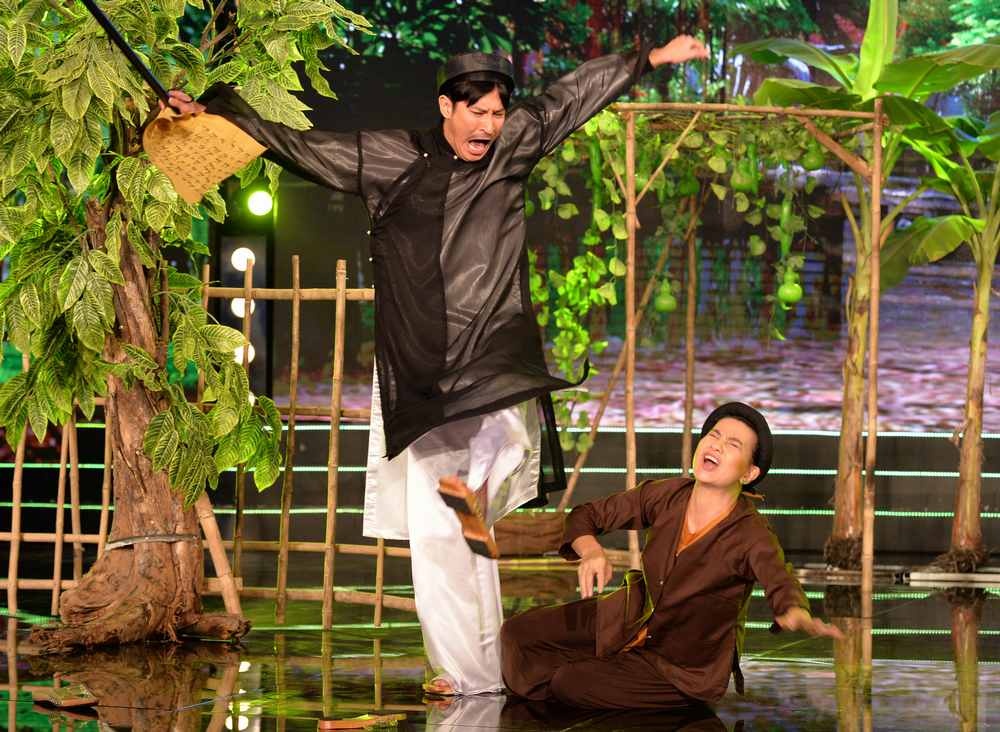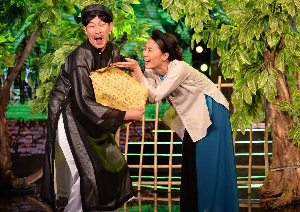 Màn tung hứng của bộ tứ Kiều Mai Lý - Cát Phượng - Huy Khánh - Ngọc Lan mang đến tiếng cười vui nhộn cho khán giả truyền hình. Tiết mục được đầu tư công phu về bối cảnh và trang phục. |