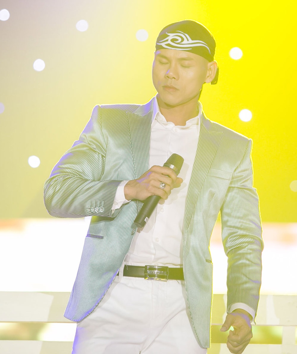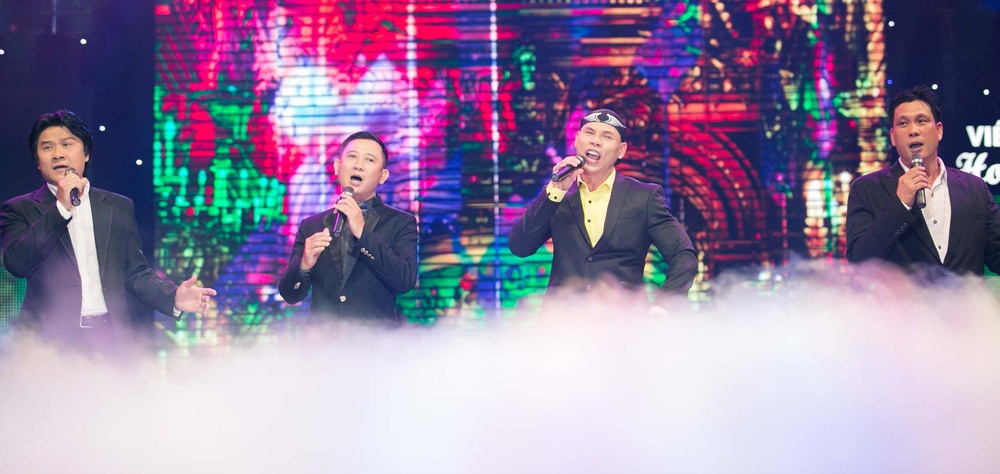 | Phan Đinh Tùng đem đến không khí hào hùng bằng ca khúc Hào khí Việt Nam với sự hỗ trợ của nhóm võ Vovinam và ca đoàn Cecilia Hoà Hưng. |