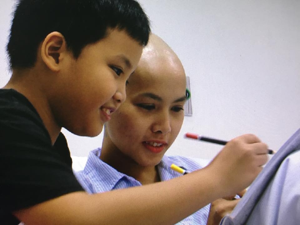 Mái tóc mượt mà rụng dần vì bệnh tật, nhưng nụ cười và niềm hy vọng chưa bao giờ tắt trên đôi môi người mẹ kiên cường này. Không ước mơ cao sang, chị Thủy chỉ mong có nhiều sức khỏe để sống và nuôi con đến khi trưởng thành.