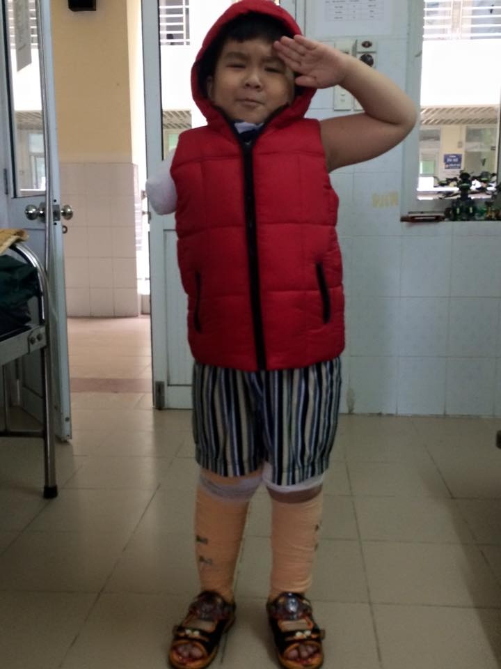 Đồng Hoàng Long (6 tuổi, quê Nha Trang) bị mất cánh tay phải sau một vụ tai nạn giao thông. Suốt gần hai tháng nay, cậu bé được bố là Đồng Nam Anh bên cạnh chăm sóc và chạy chữa tại nhiều bệnh viện.