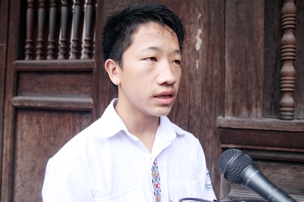 | Vừ Mí Kỵ trả lời phỏng vấn rất tự tin bằng tiếng phổ thông. Ít ai biết rằng khi mới vào lớp 10 em còn chưa nói sõi ngôn ngữ này. |
