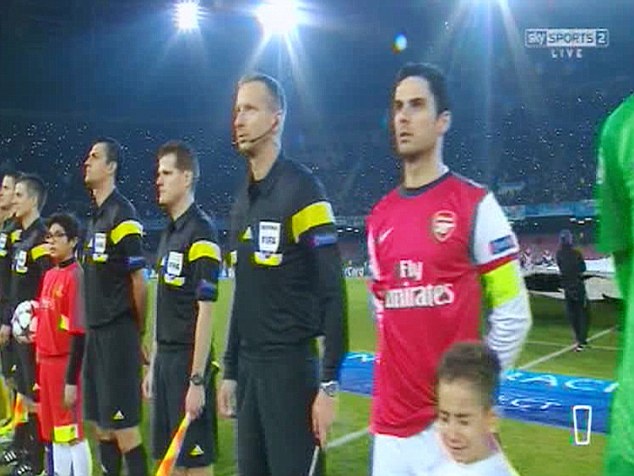 Khi hai đội ra đến sân, cậu bé này vẫn tiếp tục khóc. Đây được xem như là điểm báo về một kết cục xấu dành cho Arteta cũng như Arsenal.