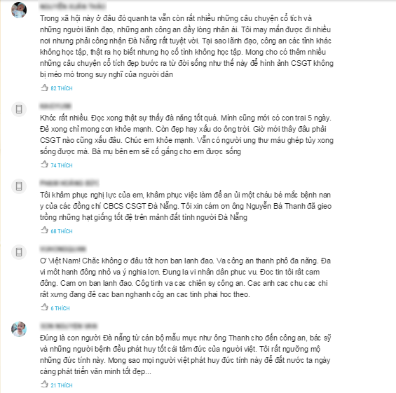 Trong hàng nghìn ý kiến đưa ra, đa số đều nhận định, đây là việc làm ý nghĩa, nhân văn và cần được phát huy nhiều hơn. Một số thành viên đã không kìm được nước mắt trước số phận của cậu bé 11 tuổi, cùng việc làm cao cả từ người lớn.