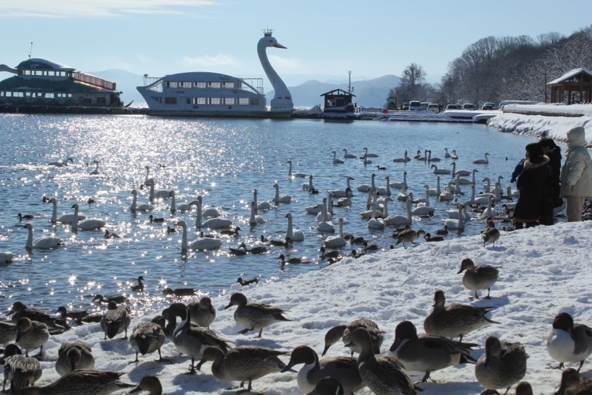 Từng đàn thiên nga trắng muốt từ vùng Siberia nước Nga di cư đến miền đất này vào mùa đông để tránh cái lạnh. Chúng chọn Fukushima và chọn hồ Inawashiro. |