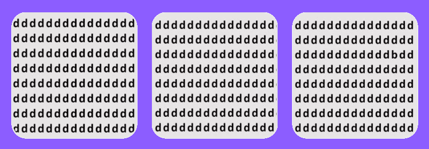Chữ "b" được đặt giữa hàng loạt chữ "d", tạo ảo ảnh quang học, gây khó cho người chơi. Tuy nhiên, nhờ đó, câu đố đánh giá được chỉ số thông minh. Thử thách này cũng tiết lộ tính kiên nhẫn.