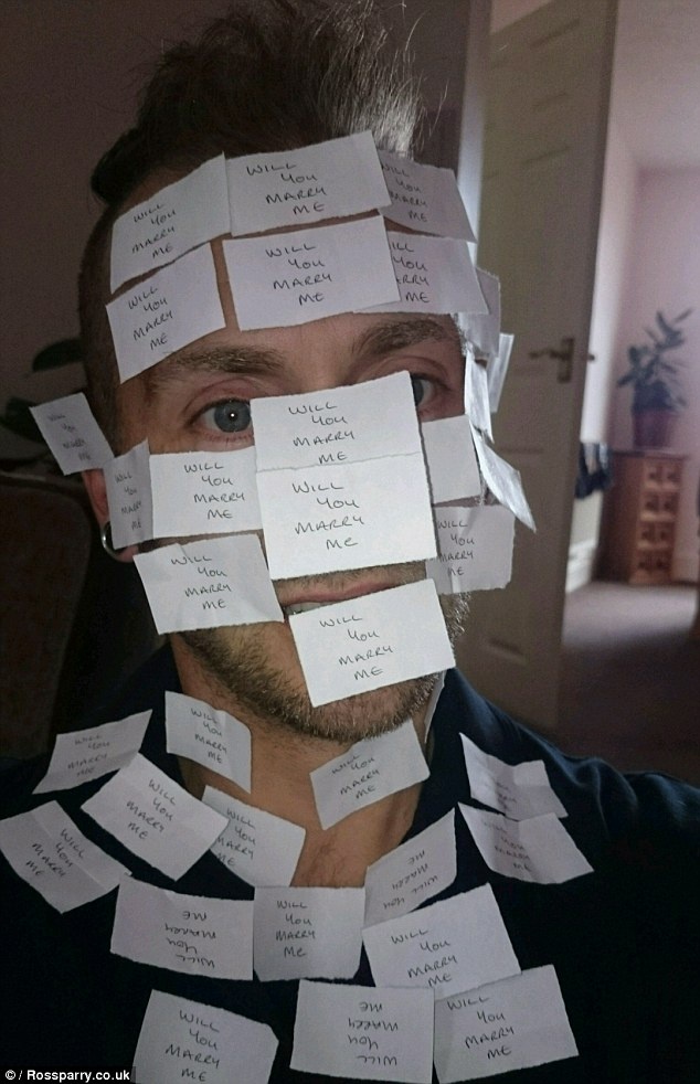 Theo Dailymail, mới đây, một chàng trai người Anh 38 tuổi đã bí mật chụp những bức hình selfie mỗi ngày mang lời nhắn cầu hôn mà bạn gái không hề hay biết.