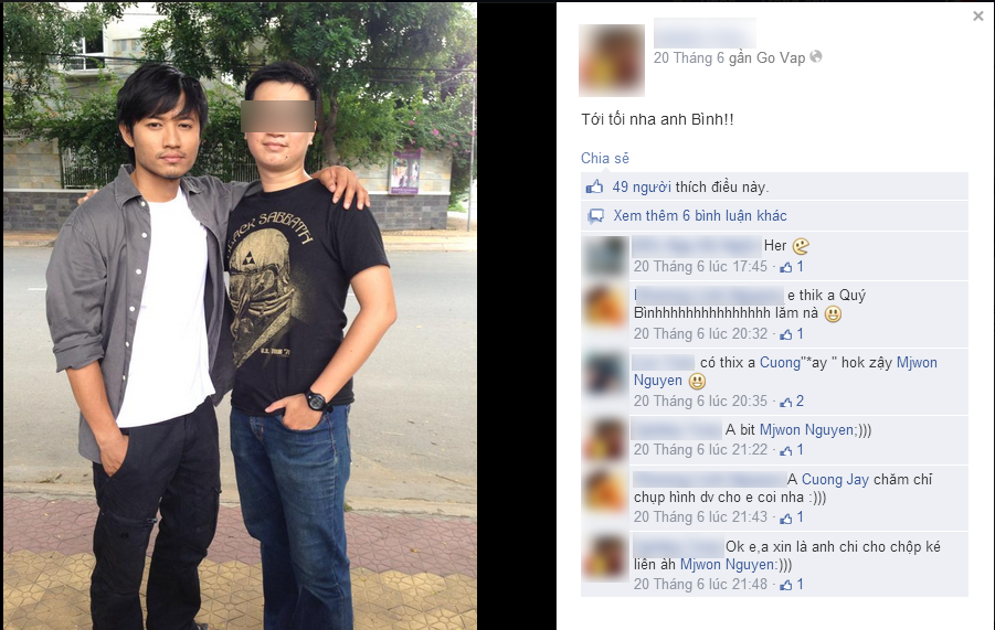 Khi được hỏi tại sao lại đăng ảnh chia sẻ như vậy trong khi không hề quen biết Vĩnh Thụy, anh chia sẻ: "Hôm anh Vĩnh Thụy vào viện vì gãy chân do đá bóng, mình có thấy thông tin này trên mạng, cũng là fan hâm mộ anh Thụy nên mình có vào thăm anh và xin kết bạn trên Facebook, rồi sau đó chụp với anh một bức ảnh làm kỷ niệm. Lúc đầu mình nghĩ chỉ viết chơi vậy thôi để câu like mọi người, không ngờ bị anh Thụy phát hiện và nổi giận đến thế.