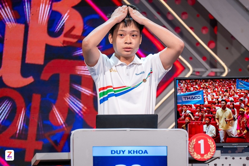 Khi MC Khánh Vy công bố cách giải và đáp án đúng, Duy Khoa không giấu được sự tiếc nuối, liên tục ôm mặt rồi cúi đầu xuống sân khấu. Thực tế, nam sinh đã tính đúng song đã quên một yêu cầu nhỏ trong đề bài nên không ghi điểm ở câu này.