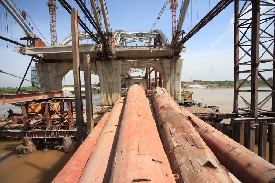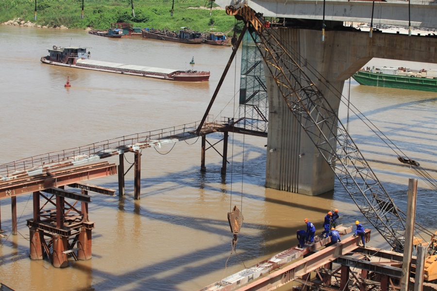 Hiện cây cầu đã hoàn thành hơn 80% và đang gấp rút triển khai đảm bảo tiến độ, chất lượng, dự kiến sẽ khánh thành đúng dịp kỷ niệm 60 năm giải phóng thủ đô 10/10/2014.
