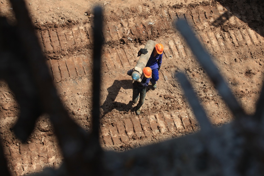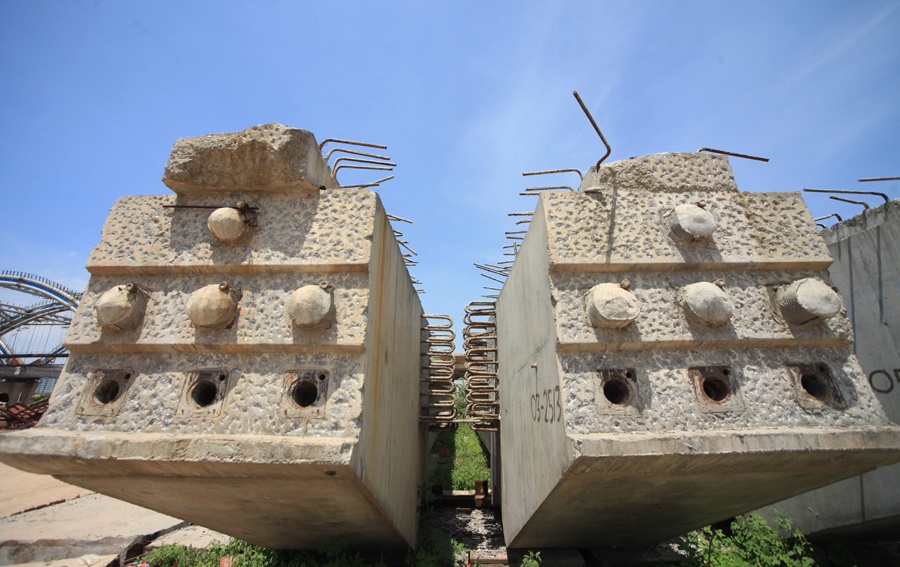 | Những thanh dầm ngang, dầm dọc nặng hàng trăm tấn đang chờ lắp ghép. |