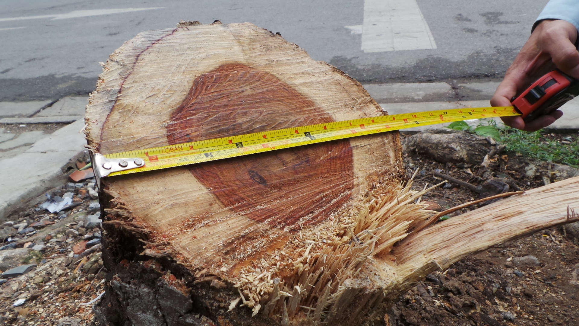 | Đo đường kính thân cây sưa đỏ bị chặt trộm. |