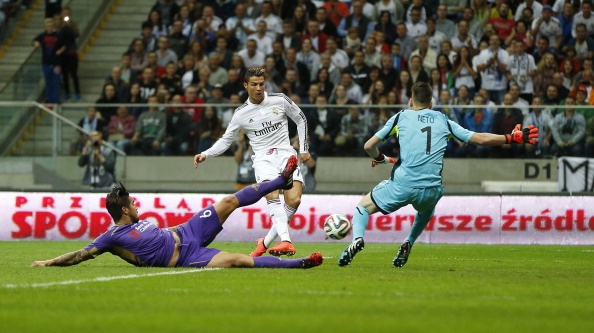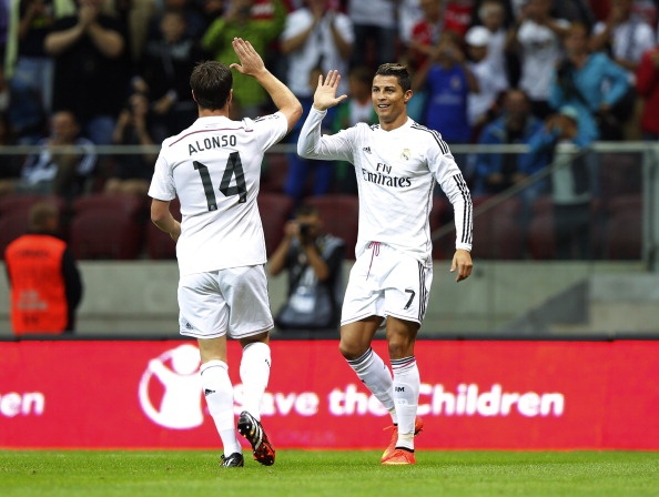 | Trở lại với những diễn biến chính của trận đấu, nhằm có sự chuẩn bị tốt nhất cho ngày khai màn La Liga diễn ra vào cuối tuần tới, Real Madrid có trận giao hữu với Fiorentina tại Warsaw, Ba Lan. HLV Carlo Ancelotti tung ra sân đội hình khá mạnh với: Navas, Nacho, Marcelo, Varane, Arbeloa, Alonso, Di Maria, Illarramendi, Khedira, James Rodriguez, Ronaldo. |