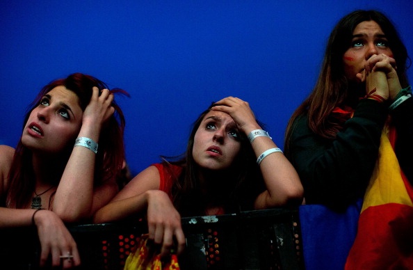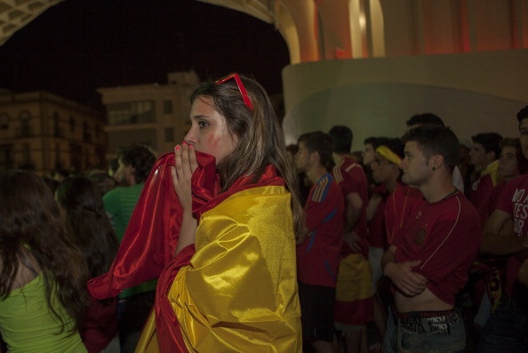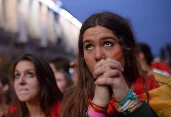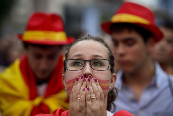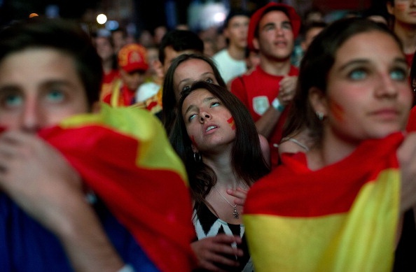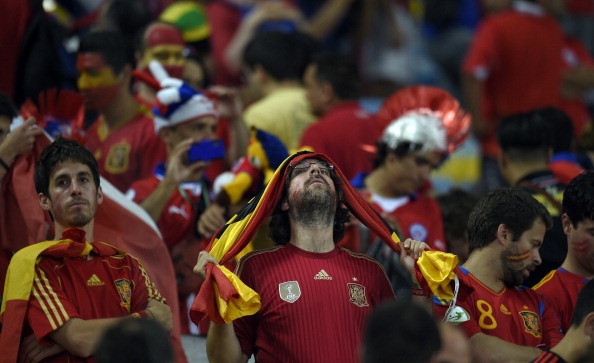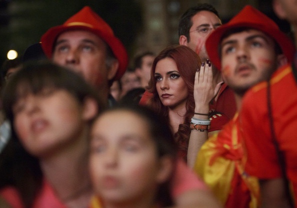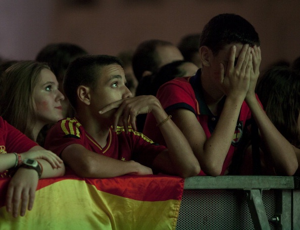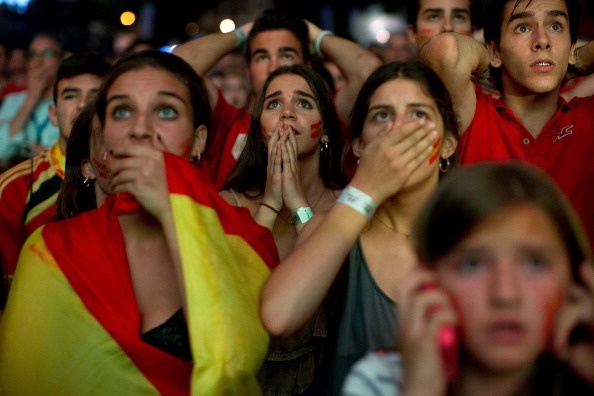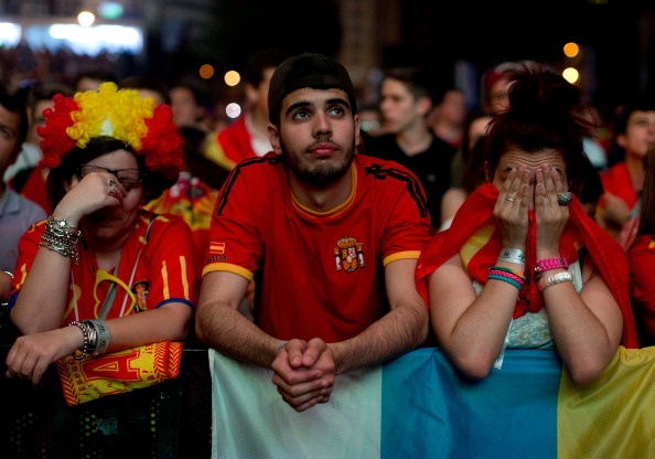 | Người hâm mộ ở Tây Ban Nha thất thần trước màn trình diễn bạc nhược của La Roja. |