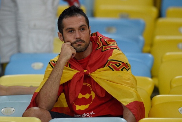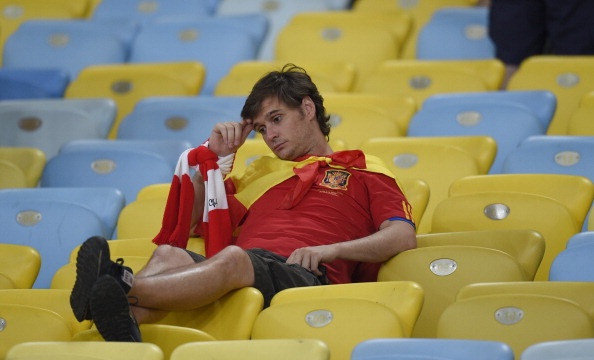 | Sau thất bại 1-5 trước Hà Lan, Tây Ban Nha tiếp tục gây thất vọng khi để thua 0-2 trước Chile ở lượt trận thứ 2. Điều đó đồng nghĩa La Roja chính thức bị loại và CĐV của họ hoàn toàn suy sụp. |