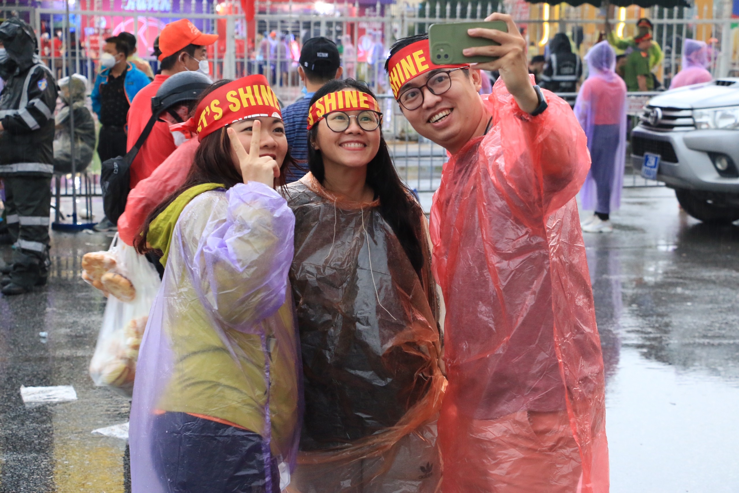 | Bất chấp thời tiết có mưa khá lớn, nhiều cổ động viên không ngại đem theo ô, khoác thêm áo mưa để vào sân theo dõi trận đấu. Theo dự báo, thời tiết Hà Nội và các tỉnh, thành phố Đồng bằng Bắc Bộ diễn biến xấu. Mưa rào xuất hiện nhiều nơi, cục bộ mưa lớn. Trạng thái âm u, nhiều mây và mưa dông có thể kéo dài cả ngày. |