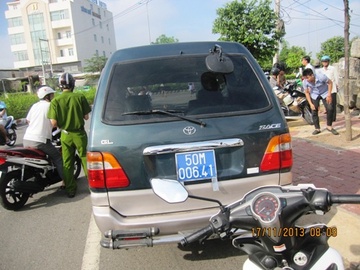Nhóm người đi trên xe biển số xanh chặn một “con nợ” trên đường, sau đó lấy tiền và xe máy của nạn nhân. Cơ quan công an đang làm rõ biển số xanh này là thật hay giả.
