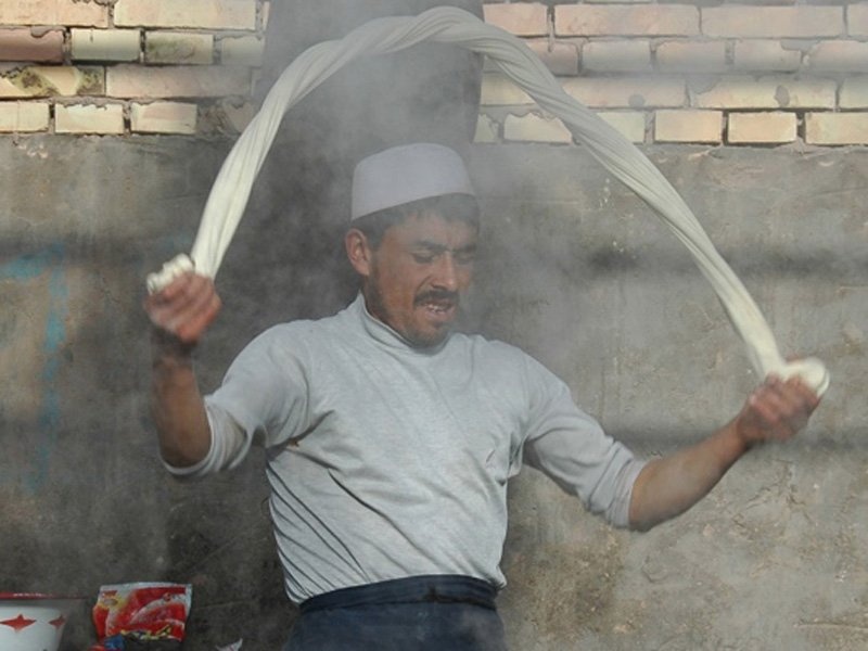 Tân Cương (Trung Quốc): Ẩm thực đường phố của Tân Cương chịu ảnh hưởng từ người Turk và Mông Cổ. Bạn nên thử mì orlaghman, món không chỉ có vị ngon hấp dẫn mà còn có cách chế biến như nghệ thuật trình diễn. Mì được xoắn, đập và kéo để có vị dai lý tưởng trước khi cho vào nước dùng, rau và thịt. Ảnh: Uncornered Market. |