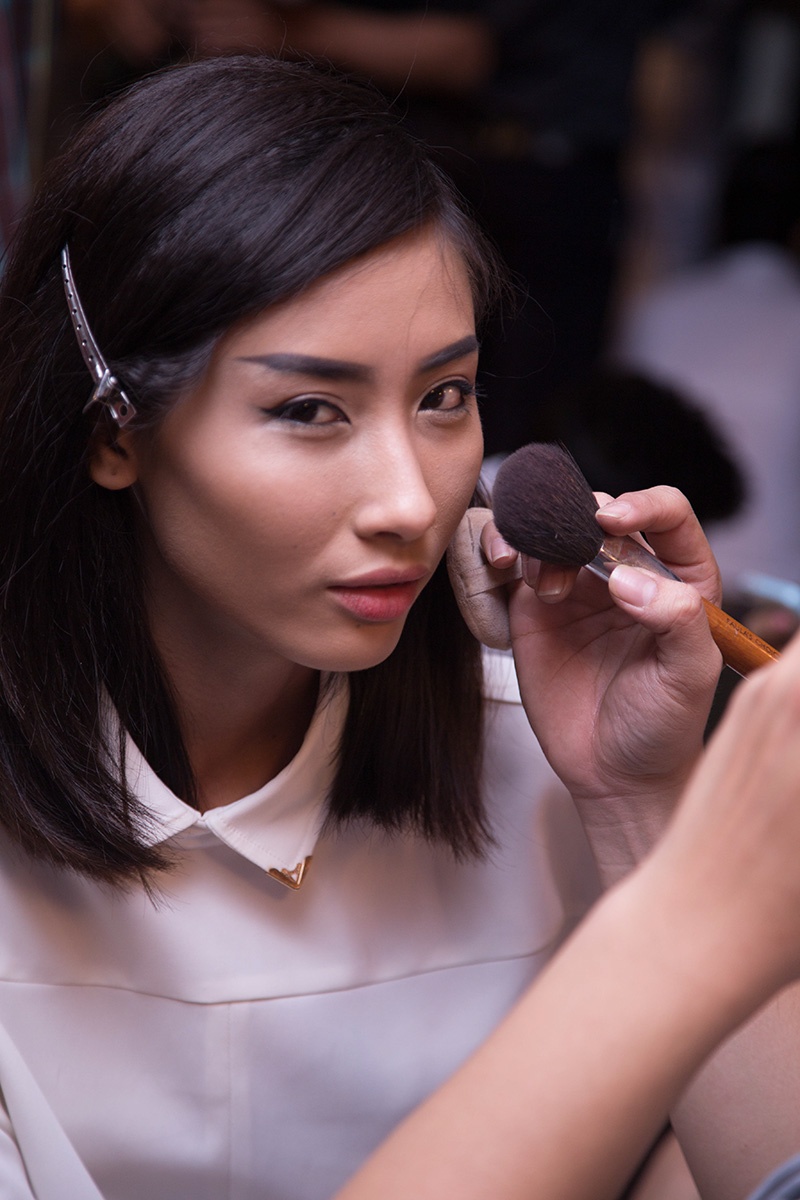 | Hằng Nguyễn chuẩn bị phía hậu trường. |