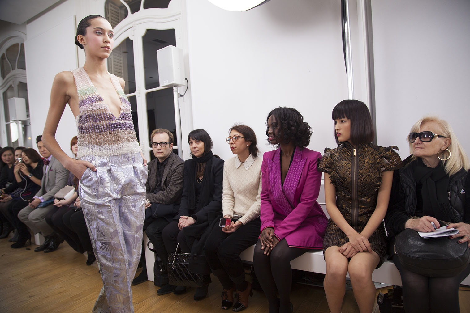 Chà Mi vinh hạnh ngồi ở hàng ghế VIP cùng các chuyên gia và người yêu thích thời trang đến từ Pháp.