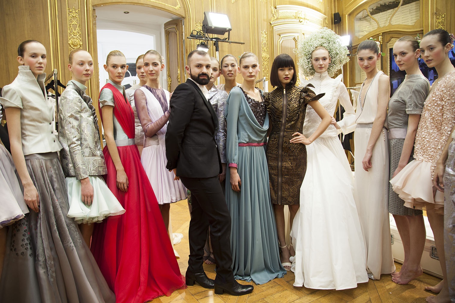 Chụp ảnh cùng NTK người Pháp và một số người mẫu trình diễn show của thương hiệu Julien Fournie.