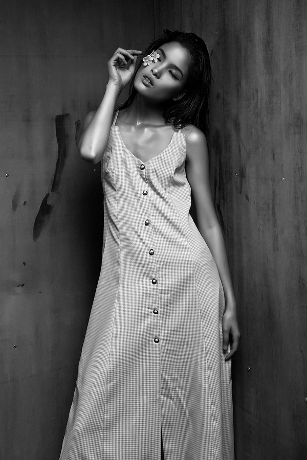 | Chân dài khoác lên mình bộ váy phong cách cổ điển thập niên 70 biểu cảm đầy tâm trạng. Bộ ảnh được hỗ trợ bởi stylist Sơn Xoăn, nhiếp ảnh Hardy Yuen, trang điểm Thiên Thanh. |