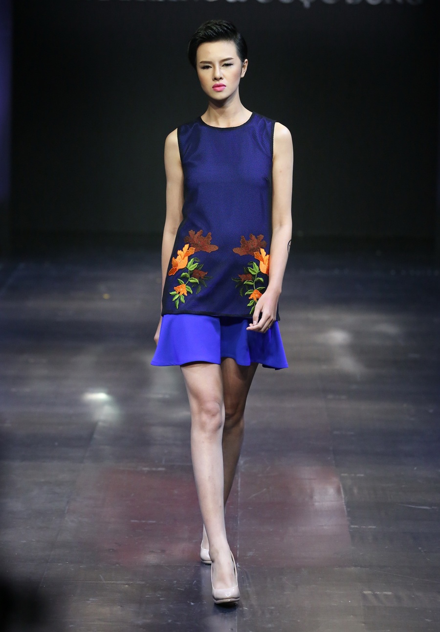 | Người mẫu Hà Đỗ cá tính trong bộ đầm suông, thêu họa tiết hoa nhã nhặn. |
