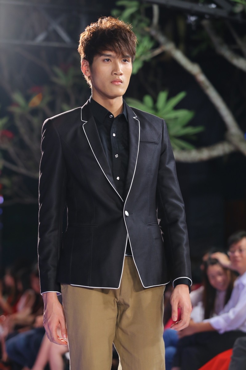 Dương Mạc Anh Quân không kém cạnh top 4 về bản lĩnh sàn diễn, anh tự tin với biểu cảm lạnh lùng.