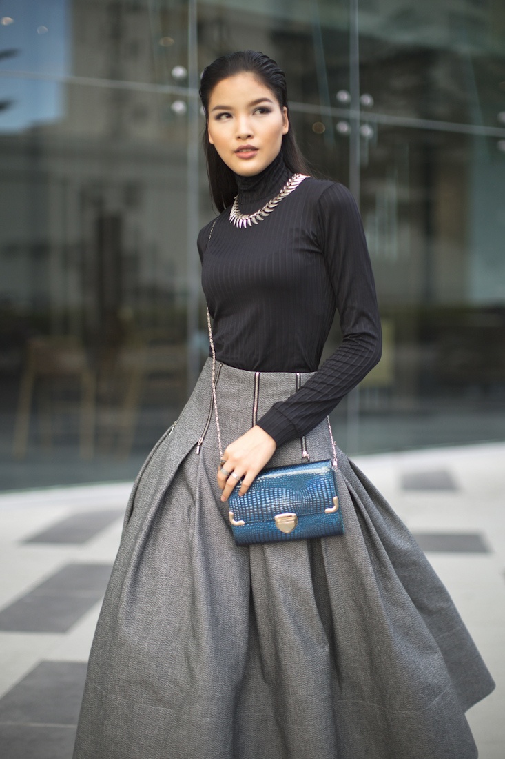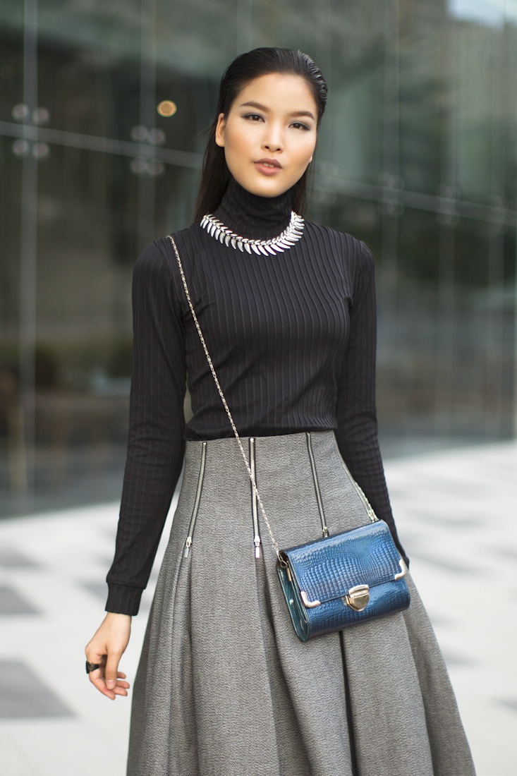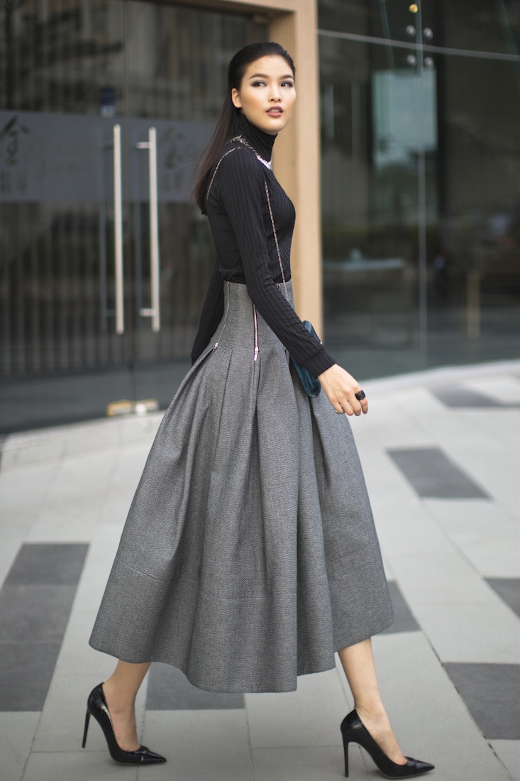 | Trong những bộ cánh thu đông thanh thoát, chân dài 9X tự tin sải bước trên đường phố. |