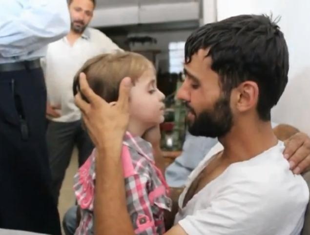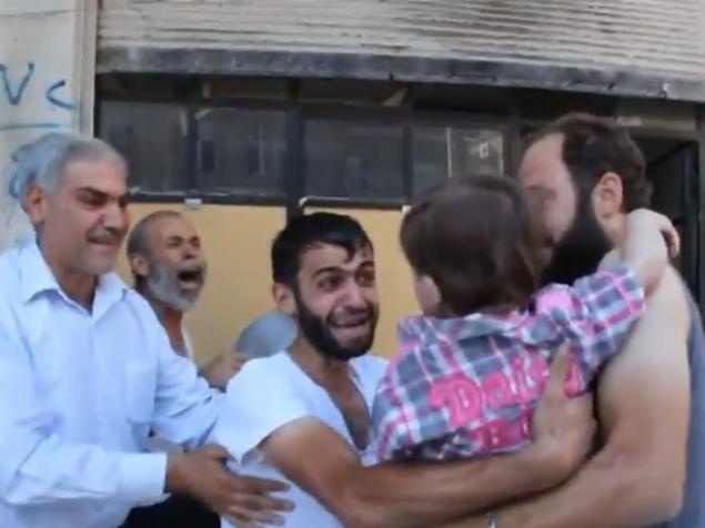 Theo NY Daily News, video do nhà hoạt động Hadi Hdhod quay tại Zamalka, ngoại ô thủ đô Damascus, nơi vụ tấn công bằng vũ khí hóa học làm hơn 1.000 người chết hôm 21/8 diễn ra. Trong clip, người cha không cầm được nước mắt khi gặp đứa con trai bé bỏng. Thậm chí anh xúc động đến mức quỵ xuống đất và nhờ bạn bè đỡ đứng dậy.