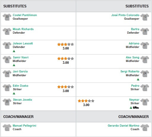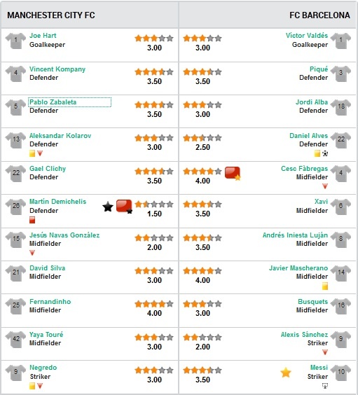 Mascherano đã chứng tỏ anh chính là chốt chặn tốt nhất nơi hàng phòng ngự của đội bóng xứ Catalunya. Tuyển thủ Argentina thực hiện những cú tắc bóng chuẩn xác, hóa giải các đợt tấn công của Man xanh. Trong khi Fabregas chính là người châm ngòi cho các pha lên bóng phía trên. Nếu trọng tài bắt chính xác tình huống ở phút 81, Barca đã có được bàn nhân đôi cách biệt từ pha kiến tạo thông minh của F4.