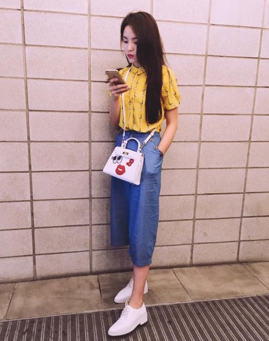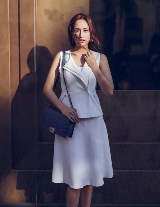 | Có lúc cô nàng lại "đổi gió" bằng những item thanh lịch, sang trọng. |