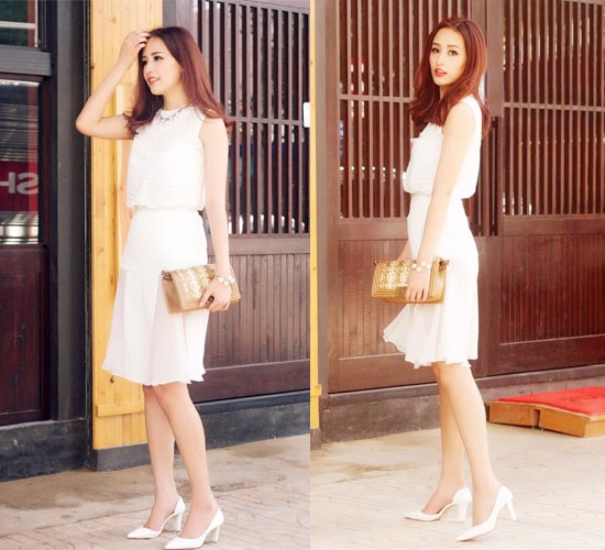 | Vóc dáng cân đối, chiều cao lý tưởng, váy xòe ngắn hay váy ôm sát cũng giúp người đẹp khoe được lợi thế thon gọn của cơ thể. |