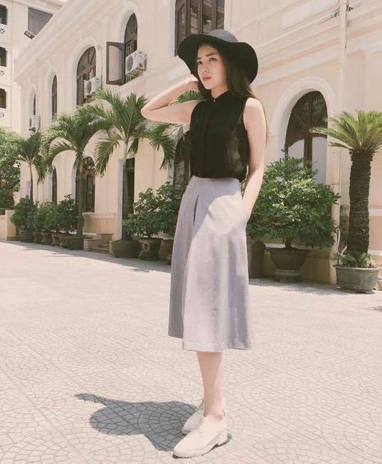 | Họa tiết nhã nhặn hay những tông màu đơn sắc nhãn nhặn là cách lựa chọn thông minh giúp Kỳ Duyên trở về đúng tuổi. |